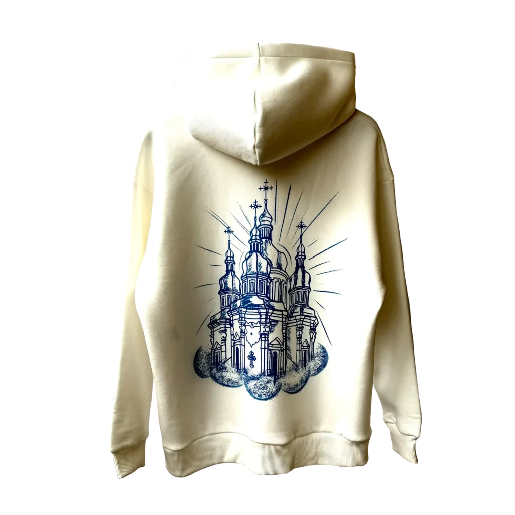 Эта худи — отражение трагизма существования вне воли и одновременно напоминание о том, что истинная вера и покаяние даруют внутреннюю свободу, которой не могут лишить даже жизненные трудности.