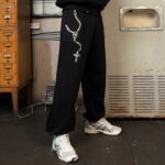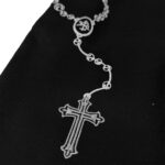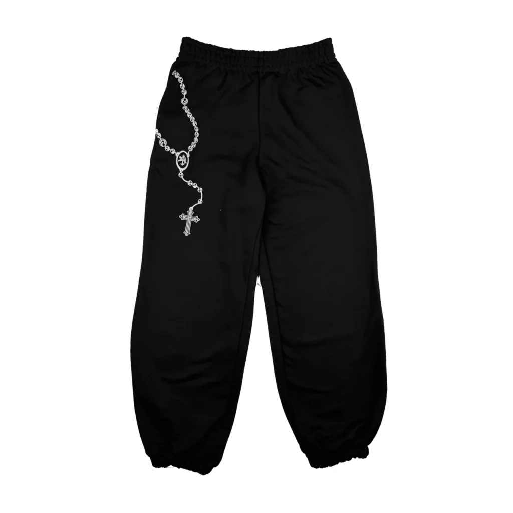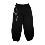 Штаны, которые говорят громче слов. Под правым карманом — аккуратная вышивка в виде минималистичного креста на цепи. Это не просто деталь, а символ внутренней силы, защиты и духовного равновесия.